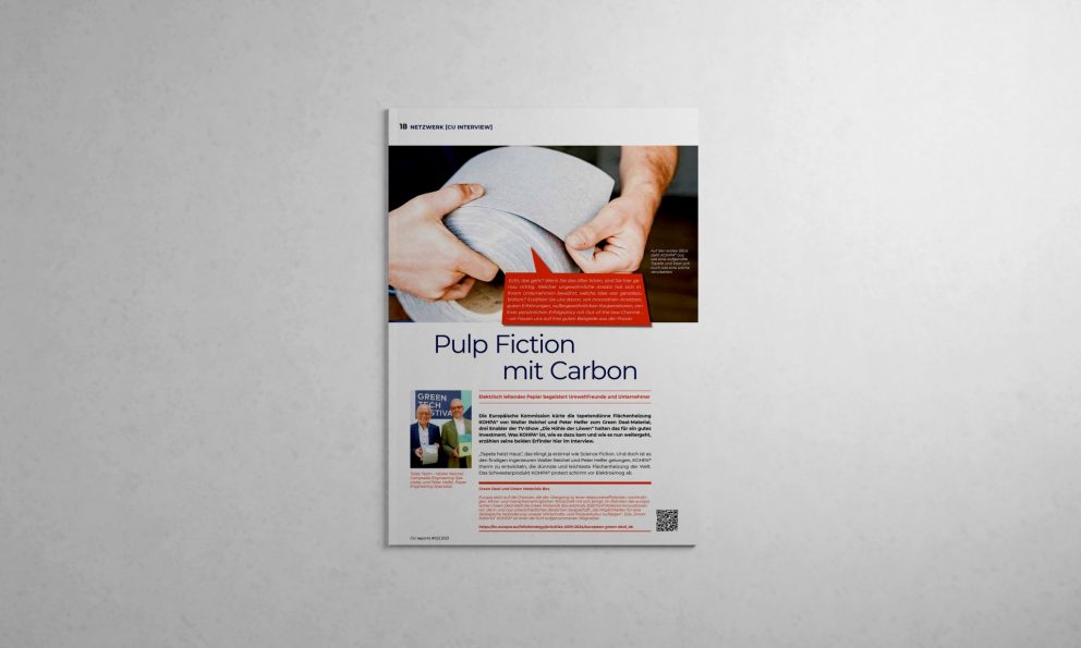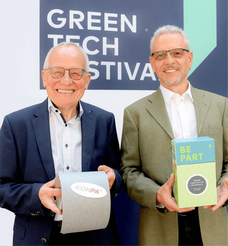 KOHPA® bietet nachhaltige Lösungen für Umwelt und Technik. Im Zuge des Green Deal der Europäischen Kommission wurden wir als eines von fünf innovativen Materialien für die Green Materials Box ausgewählt. 2021 präsentierten wir KOHPA auf dem Greentech Festival in Berlin.